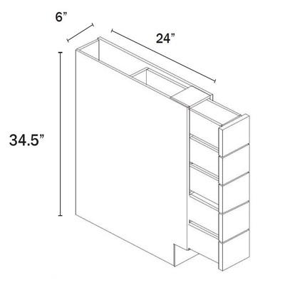 Modern Slate - 6W x 34.5H x 24D - Five Drawers Base Spice Drawers Cabinet