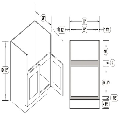 Hardware: 6-way adjustable 1 1/4” hinge with soft closing insert